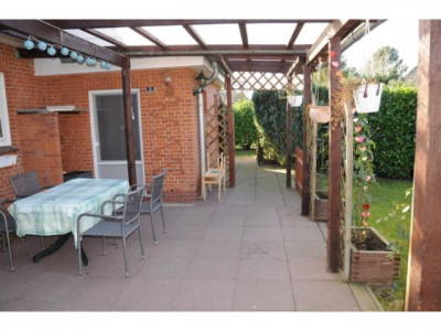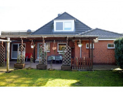 Walmdachbungalow mit PKW-Garage und Teilkeller im Luftkurort SCHOBÜLL am Stadtrand von HUSUM/NORDSEE, der Kreisstadt des Kreises Nordfriesland, direkt am Meer gelegen. Das Grundstück befindet sich in ruhiger und gepflegter Wohnlage. Zum Nordseestrand sind es nur wenige Gehminuten, ebenso zum Landschaftsschutzgebiet Schobüller Wald. Das Haus ist als Altersruhesitz gut geeignet, das Wohnen auf einer Ebene ist möglich. Im Erdgeschoss befindet sich das geräumige Wohn- und Esszimmer mit Austritt zur überdachten und rundum eingewachsenen Terrasse. Weiter befinden sich im EG zwei Zimmer, Windfang, Flur, Duschbad und Küche mit Einbauküche. Die Küche verfügt über einen Zugang zu einer weiteren überdachten Terrasse. Im Dachgeschoss befinden sich zwei Zimmer, Flur und ein Bad mit Badewanne. Über den Flur erschließt sich der Zugang zu der großzügigen Dachterrasse, die auf dem Dach der Garage errichtet wurde. Das Haus ist teilunterkellert, dort befindet sich die Buderus-Gasheizung, eine Waschküche, sowie ausreichend Abstellfläche. Zu dem Objekt gehören zwei Geräteschuppen für eine vielseitige Verwendung sowie eine PKW-Garage mit elektr. Toranlage und ein anschließender Abstellraum. Haus und Grundstück befinden sich in einem guten Zustand, bis zum 01.Juni 2015 ist das Objekt noch vermietet.