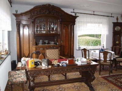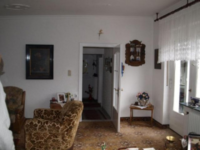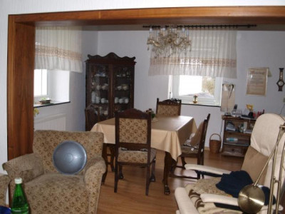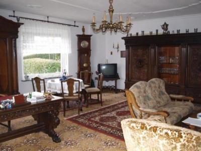 ** gepflegtes und laufend renoviertes/modernisiertes EFH mit großzügigem Grundstück **Das angebotene Wohnhaus wurde im Jahre 1948 in massiver Bauweise errichtet und durch einen Anbau im Jahre 1966 bzw. 1972 erweitert. Das Wohnhaus wurde laufend renoviert und modernisiert und befindet sich in einem sehr gepflegten und Zustand.Im Untergeschoss wurden die ehemaligen Garagen in eine kleine Gewerbeeinheit umfunktioniert.Erdgeschoss:Großzügige Diele mit „Wintergarten“; Hauswirtschaftsraum mit angrenzendem Spind; Wohnküche mit Ausgang zum Balkon; großzügiges Wohn-/Esszimmer mit Ausgang zum Balkon und sep. Kaminzug (ein Anschluss eines Kaminofens ist hier möglich); Gäste-WC; 2 weitere WohnräumeObergeschoss:Flur; 3 Schlafräume; DuschbadUntergeschoss:Flur mit separater Eingangstür; Heizungsraum (Gaszentralheizung im Jahre 2007 erneuert); Vorratskeller; Duschbad; 2 Gewerberäume;
