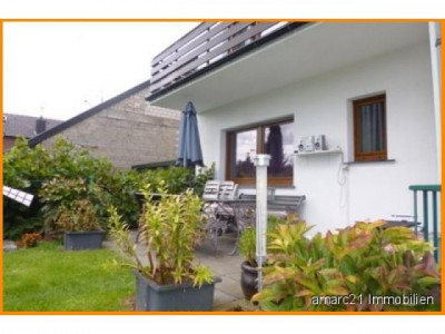 Durch den hauseigenen Vorplatz betritt man das großzügig und offen gestaltete Zweigenerationen-Reihenendhaus.Ein offenes, lichtes Treppenhaus führt vom Erdgeschoss über das erste Geschoss bis ins ausgebaute Dachgeschoss. Vom Treppenhaus aus erschließen sich jeweils linksseitig die einzelnen Wohnungen. Die Erdgeschoss-Wohnung wir derzeit noch von den Eigentümern bewohnt und ist komplett modernisiert, Hier finden Sie - neben einer zentralen Diele - ein gemütlich großes Schlafzimmer, eine funktionale Küche mit Einbauelementen, ein Prachtbad und ein wunderbar großes Wohn-/Esszimmer mit Terrasse und damit Zugang zum traumhaft angelegten und fantastischen Garten. Zurück im Treppenhaus, weiter aufwärts in das 1. Obergeschoss, erstreckt sich hinter der nächsten Wohnungstür eine Wohnung, die über 3 Zimmer, eine Küche, ein solides Badezimmer mit Badewanne und einen Balkon verfügt. Im Dachgeschoss wurden ebenfalls Räumlichkeiten - auch mit Badezimmer- platziert, so dass hier die älteren Kinder, ein Atelier oder Hobbyraum ideal untergebracht werden können.Aufteilung:Über die im vorderen Zentrum gelegene Eingangsdiele erreichen Sie linksseitig die moderne Küche, die nächste Tür führt ins sehr große und von Licht durchflutete Wohn-/Esszimmer mit großen Fensterfronten zum Gartenbereich, rechts der Diele befindet sich ein Kinder-/Arbeits- oder Schlafzimmer und daneben das Prachtbad mit toller, ebenerdiger Dusche.Obergeschoss: wie vor - jedoch mit 3 Zimmern und Balkon sowie Bad mit Badewanne.Alles in allem eine hervorragende Wohnung mit viel Atmosphäre. Weiter aufwärts - über das Treppenhaus - erreichen Sie das bereits ausgebaute Dachstudio. Die Räumlichkeiten sind durch die großen Süd-Westfenster sehr hell und zu jeder Tageszeit Licht durchflutet. Der sehr gut durchdachte Architektengrundriss und die großzügige Aufteilung über 3 Geschosse macht das Haus zu einem idealen Familiendomizil, auch für mehrere Generationen, und besitzt ein vielfältiges Zukunftspotential.Idealer Partner für junge Familien oder - im Besonderen - als Mehr-Generationen-Haushalt nutzbar.Bei der Bauausführung wurde die Garage neben das Haus platziert. Ein Vollkeller bietet ebenfalls zusätzlich viel Stauraum für Dies und Das. Im Kellerbereich finden Sie auch die Heizung.Pflegeleicht und praktisch bequem aber dennoch riesig präsentiert sich der wunderbare Gartenbereich. Von Terrasse und Balkon auf der Südwestseite genießen Sie den Blick von der in den ruhigen Sommergarten und/oder schauen Ihrem Nachwuchs beim toben zu.