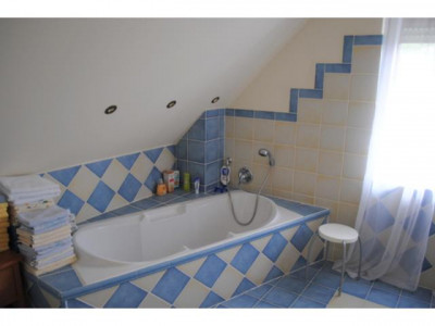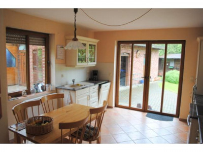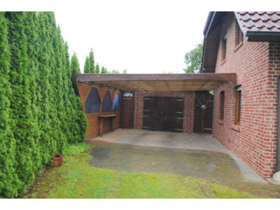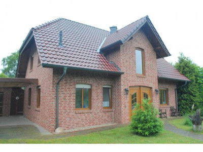 Das schöne Landhaus wurde im Jahre 2002 in Massivbauweise auf einem ca. 654 m² großen Grundstück erbaut. Bei der Geschossdecke handelt es sich um eine Betondecke. Als Außenhaut wurde ein roter Klinker gewählt. Bei der Dacheindeckung hat man sich für rote engobierte Tondachziegeln entschieden. Darüber hinaus verfügt das Satteldach über Kupfer-Dachrinnen. Zur weiteren Ausstattung zählen die isolierverglasten Kunststoffsprossenfenster (mit Holzkern) in Holzoptik, welche im Erdgeschoss (außer Gäste-WC und HWR) über elektrische Rollläden verfügen. Bei den Bodenbelägen handelt es sich teilweise um Fliesen-, Laminat- und Teppichböden. Die Beheizung erfolgt mittels der vorhandenen Gasheizung des Fabrikats "Vaillant" aus dem Jahre 2002. Auch der schicke Kamin mit Klinkerelementen im großzügigen Wohnbereich sorgt für eine wohlige Wärme und eine behagliche Atmosphäre. Ein ganz besonderer Hingucker ist auch der tolle Rundbogen im Wohnzimmer. Die vorhandene Einbauküche im Landhausstil (Farbe: vanille) mit Granitarbeitsplatte ist im Kaufpreis enthalten. Über eine offene Holztreppe gelangen Sie ins Dachgeschoss, in dem Sie neben einem Vollbad drei Schlafzimmer vorfinden. Der Balkon in Süd-West-Ausrichtung ist von zwei Schlafzimmern aus begehbar. Zur Unterbringung der Fahrzeuge sind neben einer gepflasterten Garage mit rückwärtigem Geräteraum und WC diverse Einstellplätze auf dem Grundstück gegeben. Der komplett uneinsehbare und pflegeleicht angelegte Garten mit großzügiger gepflasterter Terrasse und Holz-Gartenhaus lädt zum gemütlichen Verweilen ein!!Daten Energieausweis: V, 76,1 kWh, Gas, Bj. 2002, C