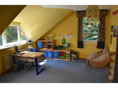 Das ansprechende Einfamilienhaus wurde 1992 in massiver Bauweise auf einem ca. 1.208 m² Sonnengrundstück in perfekter Lage erbaut. Die Immobilie besticht durch eine gute Aufteilung und bietet für Ihre Familie ein perfektes Wohnambiente. Das Grundstück ist sehr schön angelegt, in Teilbereichen aber auch weitestgehend natürlich belassen worden. Im hinteren Grundstücksteil begeistert eine große Spielfläche für Kinder. Der Pool ist mit Holzdielen umrandet. Eine praktische Einfriedung nach gärtnerischen Gesichtspunkten sorgt zusammen mit der gemauerten Zaunanlage für einen repräsentativen Anblick. Von der ca. 75 m² großen, mit Schiefer belegten Terrasse und insbesondere vom Balkon im Obergeschoss erblickt man die Havel und den Grunewaldturm auf der anderen Seite des Ufers.Baujahr ca.: 1992Grundstücksgröße ca.:1.208 m² Wohnfläche EG/OG ca.: 180 m²Nutzfläche UG ca.: 110 m²Zimmer: 7 – inkl. der beiden Räume im UG Heizung: Ölzentralheizung der Fa. Viessmann mit WarmwasserPoolanlage und Spielplatz im Garten, Stellplätze f. 2 Pkw auf dem Grundstück, große TerrasseMietzeit: 3 Jahre ab dem 01.08.2015 (befristeter Mietvertrag) Nettomiete: Euro 1.990,--zzgl. Vorauszahlung für Nebenkosten: Euro 350,-- (in der VZ sind folgende Kosten enthalten: Grundsteuer, Schornsteinfeger, Wartung Heizung/Therme/Hebeanlage, Winterdienst, Gartenpflege, Versicherungen)Zur Info: Die Kosten für Strom, Öl, Wasser und Müllabfuhr trägt der Mieter separat