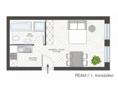 Erstbezug nach Sanierung Das topmoderne chice 2 Zimmer Apartment mit offener Küche und innenliegenden Duschbad befindet sich im 3. Obergeschoss eines komplett sanierten Mehrfamilienhaus mit Personenaufzug.Links neben der Eingangstüre wird die offene Küche vom Vermieter noch eingebaut folgend von einem schmalen kurzen Weg zum Wohn-und Schlafbereich. Das Zimmer liegt zur Straße hin.Der Aufzug fährt auch in den Keller.Zu der Wohnung gehört ein Keller.