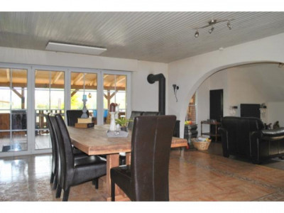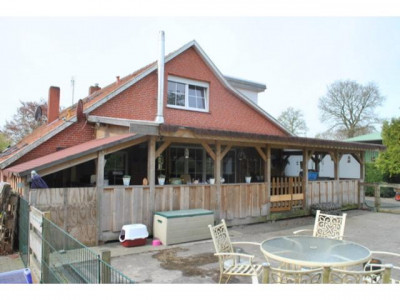 Das Objekt wurde ca. im Jahre 1960 in Massivbauweise auf einem ca. 1,3 ha großen Grundstück erbaut und bietet die Nutzung als Zweifamilienhaus. Die Strom- und Wasserversorgung erfolgt getrennt. Diverse Umbaumaßnahmen erfolgten nachträglich in den 80er Jahren. In 2009 erfolgte eine Hohlschichtdämmung. Auch die Dachspitze wurde in 2009 isoliert. Als Außenhaut wurde ein roter Klinker gewählt. Das Satteldach ist mit roten Betondachziegeln eingedeckt worden und verfügt über Zink- und Kunststoffdachrinnen sowie eine große Dachgaube. Zur weiteren Ausstattung zählen weiße, isolierverglaste Kunststoffsprossenfenster, welche größtenteils über Rollläden verfügen. Bei den Bodenbelägen hat man sich sowohl für Fliesen- als auch für Laminatböden entschieden. Die Beheizung erfolgt mittels einer Strom-Infrarotheizung aus 2009. Eine Gasleitung liegt an der Straße. Zwei Kaminöfen in den Wohnzimmern sorgen zusätzlich für eine wohlige Wärme und vermitteln ein angenehmes Wohnklima. Die creme-farbene Einbauküche ist neben einer weiteren rustikalen Einbauküche älteren Baujahres im Kaufpreis enthalten. Das Dachgeschoss ist in beiden Wohneinheiten über je eine Holztreppen zu erreichen. Zur Unterbringung der Fahrzeuge sind neben einer Garage (separates Nebengebäude) diverse Einstellplätze auf dem Grundstück vorhanden. Vom Objekt aus lässt sich ein traumhafter Weitblick auf die Pferdekoppel genießen. Die sehr großzügige überdachte Terrasse (ca. 60 m²) mit Jacuzzi (Preis VB) lädt zum gemütlichen Verweilen ein. Auch ein großes Holz-Gartenhaus sowie ein Zierteich sind auf dem weitläufigen Grundstück gegeben. Darüber hinaus wird neben einem Stall auch ein Geräteraum geboten. Das Objekt eignet sich IDEAL zur Pferde- und Kleintierhaltung!!Daten Energieausweis: B, 166,9 kWh, Strom, Bj. 2009, F