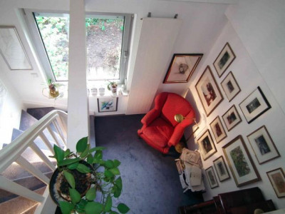 Zwei Wohnungen, ein Preis: Eine wunderschöne, großzügige und individuell geschnittene Wohnung über zwei Etagen, mit kl. offener Küche (Einbauküche), einem großen Wohn- und Eßzimmer (ca. 40 m²), Balkon (süd), Schlafzimmer und zwei Bädern im 1.OG und über eine Wohndiele erreichbar, einem großen, liebevoll ausgebauten Raum im 2. OG (DG). Die Wohnfläche dieser Wohnung beträgt insges. ca. 132 m². Hinzu kommt eine abgeschlossene Atelierwohnung (eigener Zugang über Treppenhaus), sonnig und hell (Südseite) mit eigener Küche (Einbauküche) und Bad, mit viel Liebe zum Detail ausgebaut, und einer tollen Raumatmosphäre (Wohnfläche ca. 31 m²) Zwei Garagen (können für je 10.000€ dazu gekauft werden) auf dem Hof des Hauses runden das Angebot ab. Das Haus liegt in einer ruhigen Sackgasse, in grüner und gewachsener Umgebung. Es besteht aus insgesamt 5 Eigentumswohnungen auf 3 Etagen, überwiegend von Eigentümern bewohnt, nette Eigentümer- und Hausgemeinschaft. Verkauf provisionsfrei, ausschließlich vom Eigentümer / Hausverwalter.