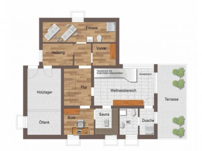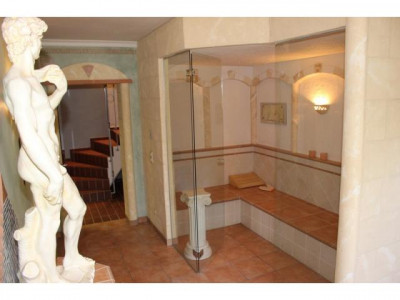 In einer sehr ruhigen Hanglage mit unverbaubarem Fernblick in die wunderschöne Eifellandschaft liegt dieses Mitte der 80iger Jahre massiv erbaute Einfamilienhaus. Die Innenstadt in Bitburg ist in wenigen Minuten mit dem Auto und auch in etwa 20 Minuten zu Fuß erreichbar.Das über 1.100 m² große Grundstück wurde auf mehreren Ebenen angelegt, ist komplett eingefriedet und verfügt über drei Sonnenterrassen.Der 55 m² große Wohnbereich mit offener Küche und Kachelofen ist lichtdurchflutet und hat durch die bodentiefen Fenster direkten Zugang zu einer sehr großen Südterrasse mit Springbrunnen. Im Obergeschoss erwartet Sie neben drei Schlafzimmern mit großzügigen Einbauschränken (das Elternschlafzimmer verfügt über einen eigenen Sonnenbalkon) ein ansprechendes Badezimmer mit Badewanne, Doppelwaschtisch und Dusche.Das absolute Highlight ist jedoch der ca. 40 m² große Wellnessbereich im Untergeschoss. Neben einem Tepidarium (Aromatherapie und Sternenhimmel) stehen eine Sauna mit integriertem Dampfbad, Fußbad, Ruhebereiche (innen und aussen) und WC mit Dusche zur Verfügung.Weitere Lager- und Technikräume, ein kleines Büro, Waschküche und Fitnessraum stehen im Untergeschoss zur Verfügung.Vor dem Haus befindet sich ein großzügiger Carport und mehrere Stellplätze. Gerne präsentieren wir Ihnen diese außergewöhnliche Immobilie in einem persönlichen Besichtigungstermin und stehen Ihnen für weitere Fragen gerne jederzeit telefonisch zur Verfügung.