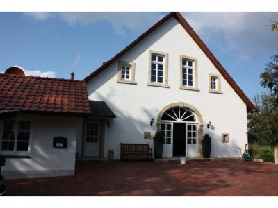 Es gibt drei Grundsätze beim Hauskauf:1. Lage2. Lage3. Lagezu1. Ortsrandlage Mettingen -nah an Osnabrück (nicht zu nah!) ca. 20 min Fahrzeit-nah an Ibbenbüren ca. 10 min Fahrzeit-nah am Ortskern mit allen Geschäften ca. 3 min Fahrzeitzu2. unverbaubarer Blick -über Wiesen und Felder-Hervorragende Weitsicht insbesondere vom OG-3000 qm pflegeleichtes Grundstückzu3. seltene Südausrichtung des Hauptgebäudes (für das Ursprungsjahr 1861)-Sonne in allen Räumen den ganzen Tag (wenn Sie denn scheint)Es gäbe so viel historisches , aber auch neues über dieses Haus zu erzählen. Der komplette Neuaufbau war ein Abenteuer , welches mit Kosten von über 1 Mio Euro kostspielig war. Aber man macht ja keine halben Sachen. Dennoch ändern sich die Lebensumstände und Eigentum verpflichtet nun mal sehr.Das gesamte Objekt ist mit einen massiven Drahtgitterzaun eingezäunt. Zur Straße wurde aus alten von Hand behauenen Sandsteinen eine wunderschöne Mauer mit einem Schmiedeeisenen Zaun neu aufgebaut. Zwei passende Tore mit el. Torantrieb (IR-Fernbedienung) zieren die Einfahrten, welche mit Buchen gesäumt sind. Großzüge Plasterungen mit Pflasterklinkern in Rot (ca. 600 qm) umgeben das Gebäude sowie die Einfahrten und Parkflächen.