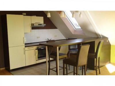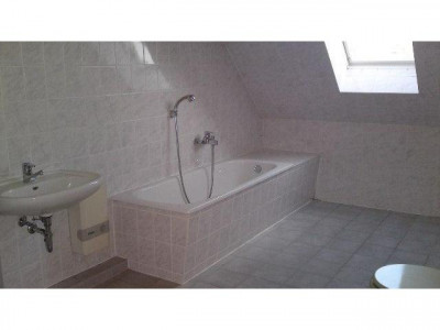 Helle und attraktiv geschnittene 2 Zimmer Wohnung im Dachgeschoß eines Mehrfamilienhauses, Diele, teglichthelles Badezimmer mit Wanne / Dusche / WM-Anschluß / Waschtisch und WC gefliest, das große Wohnzimmer (ca. gesamt 25 m²) teilt sich in Wohn- und Kochbereich und bietet durch die großen Fenster einen schönen hellen Raum, Schlafzimmer ca. 12 m², zur Wohnung gehört ein Abstellraum, der Garten wird gemeinschaftlich genutzt ebenso wie die Stellplätze auf dem Grundstück