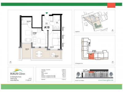 Diese exklusive zwei Zimmer Wohnung befindet sich im Staffelgeschoss des Hauses Glinn in zentraler Lage von Glinde. Die Wohnung verfügt über ein helles Schlafzimmer, einen großzügigen Wohnbereich, ein Duschbad, einen Hauswirtschafts- bzw. Abstellraum sowie über eine großzügige Dachterrasse (23 m²). Die hochwertige Einbauküche ist im Wohnbereich integriert und besteht aus weißen Hochglanzlack Froten. Zusätzlich gehört zu der Wohnung ein Kellerraum. Alle Fenster verfügen über elektrische Aussen Rolläden. 1 PKW Stellplatz ist in dem hier angegebenen Mietpreis mit enthalten. In den 120,00 € Betriebskosten sind die Kosten für die Hausdame in Höhe von 30,00 € monatlich enthalten.
