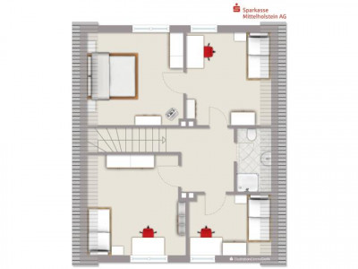 Im Erdgeschoss erwarten Sie auf 66 m² Wohn-/Nutzfläche ein Vorflur als Windfang, ein Flur mit einem offen gestalteten Zimmer, ein geräumiges und sonniges Wohn-/Esszimmer, eine Küche mit einer kleinen Speisekammer und Zugang zum Garten, ein Wannenbad und ein WC. Im Dachgeschoss befinden sich auf 52 m² Wohn-/Nutzfläche ein Flur, ein großzügiges Schlafzimmer, ein Duschbad, ein weiteres Zimmer und eine Küche, die sich problemlos zu einem Wohnraum umgestalten lässt. Bei Bedarf kann das Schlafzimmer zu zwei eigenständigen Zimmern umgebaut werden. Weitere Nutzflächen stehen im Vollkeller, in der Garage oder in einem Nebengebäude zur Verfügung.