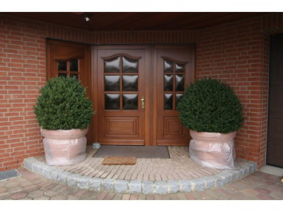 Das Grundstück mit ca. 978 m² Gesamtfläche wurde mit viel Liebe zum Detail bepflanzt und gepflegt. Als besonderer Blickfang kommen die zahlreichen Kugelbüsche und Formhölzer zur Geltung, die dem Garten rund um das Haus herum einen besonderen Charme verleihen.