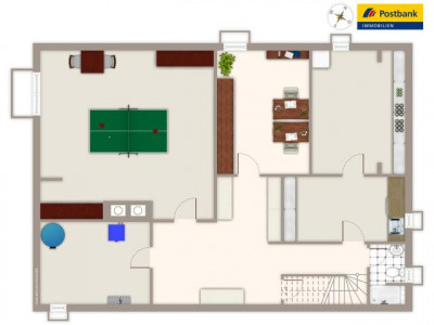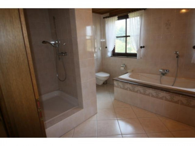 Mit einem kompletten Duschbad, bietet sich das Untergeschoß für eine Einliegerwohnung oder für Büros einfach an.