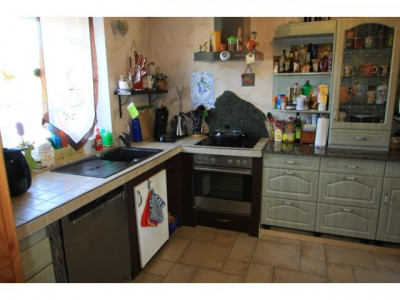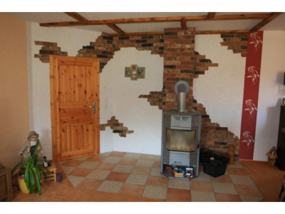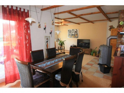 Durch den Kaminofen im Wohn-, Esszimmer wird das Wohnambiente noch unterstrichen. Ergänzt wird die Behaglichkeit durch die offen gestaltete Küche mit der Einbauküche.