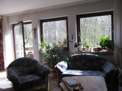 Hier bieten wir Ihnen ein sehr gepflegtes, auch von außen sehr attraktives 2-Familienhaus mit separaten Eingängen herrlich ruhig direkt am Wald. Dieses gemütliche Haus bietet Ihnen im Erdgeschoss ca. 129 qm Wohnfläche mit herrlich großer Terrasse, von 2 Seiten begehbar.