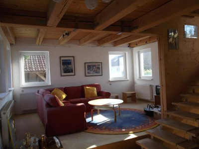 Großes, offenes, helles und individuelles Haus mit vielfältigen Nutzungsoptionen: Älterer Teil von 1960 (Sanierung 2010, u.a. 29 neue Kunststofffenster und Einbauküche) und moderner Anbau von 2010 (im Souterrain komplett mit Marmorböden, jedes Geschoss mit Holzdecken und offenen Holztreppen). Jeweils separarter Eingang. Durch den neuen Anbau gibt es viel Platz für eine grosse Familie, auch mehere Generationen oder Kombination von beruflicher und privater Nutzung.UG- Altbau: großes, neu ausgebautes Bad (freisteh. Badewanne, Du.barrierefrei,Doppelwaschbecken, WC, Bidet), Haushaltsraum und ein Wohnraum (Zugang zum Garten). Separates Kellerteil (Heizraum mit Öltank).Souterrain- Anbau: großer Wohnraum ( 35m² ) zur Südseite mit ebenerdigem Ausgang zum Garten u. offener Treppe zum Nebeneingang. Kamin vorhanden für Ofen oder offenen Kamin.EG - Altbau: große Wohnkü. mit Südbalkon, Wohnzi. (24m²) mit Erker, Bad mit WC,Gäste-WC, Durchgangstüre zum Anbau.EG -Anbau: Seiteneingang mit beheiztem Vorraum, ein Zimmer mit versetzter Ebene u. offener Holztreppe zum Zwischengeschoss. 1.OG - Altbau: 3 Zimmer ( davon eines mit Waschbecken), 1 WC, Durchgangstüre zum Anbau1.OG -Anbau: ein Zimmer mit versetzter Ebene u. offener Holztreppe zur Dachterrasse.DG - Altbau: Spitzdachboden als Stauraum.DG -Anbau: Dachterrasse ( 35 m² ) teilw. überdacht, mit schönem, weiten Ausblick.Heller Garten rings um das Haus.Hohes Doppelcarport, auch für Wohnmobil, mit zwei Stellplätzen davor.