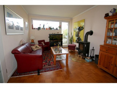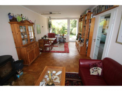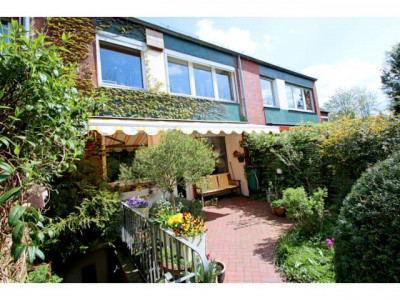 Dieses gepflegte Mittelreihenhaus wurde 1972 in Massivbauweise errichtet. In der Erdgeschossebene strahlt das helle, freundliche Wohnzimmer mit Kaminofen eine besondere Gemütlichkeit aus. Vom Wohnzimmer gelangen Sie auf die schöne Sonnenterrasse mit Markise, die nach Süd / West ausgerichtet ist. Der liebevoll gestaltete Garten mit Terrasse aus Klinker im Fischgrät-Muster wirkt wie eine kleine grüne Oase. Die zeitlose dänische Einbauküche mit einem Stehtisch und Blick in den Garten und das angrenzende Wäldchen ist sowohl geschmackvoll gestaltet als auch von der Raumnutzung optimal. Im Obergeschoss steht neben den drei Schlafräumen ein helles Duschbad zur Verfügung. Ein viertes, grosszügiges und sonniges Gäste-/Arbeits- oder Kinderzimmer befindet sich im Dachgeschoss. Zwei Außenjalousien sorgen an der Süd-/West Seite für Sonnenschutz und Verdunklung während des Tages. Ergänzt wird die Wohnfläche durch den großen voll ausgebauten Keller, der neben Waschküche und Werkecke noch einen Hobbyraum bietet. Vom Hauswirtschaftsraum geht eine Kelleraußentreppe in den Garten. Die Fahrräder finden im kleinen Gartenhaus ihren Platz, hinter dem ein Fahrrad- und Wanderweg langführt. Im Zuge der Modernisierung sind Fenster erneuert und 2014 neue Dachflächenfenster von Velux mit solarbetriebenen Sonnenschutz eingebaut worden. Die elektrische Anlage wurde überholt. Weiterhin sind die Fußbodenbeläge wie Parkett und Teppichböden erneuert sowie Bad und Gäste-WC 2008 und 2009 neu gestaltet worden. Die Gaszentralheizung wurde 2012 installiert. So bietet das Haus ca. 177m² Wohn- & Nutzfläche verteilt auf 4,5 Zimmer, Küche, Bad und Gäste-WC sowie einen Vollkeller in einem zeitgemäßen, modernisierten Zustand. Zu dem Haus gehört ein Kfz-Stellplatz. Die ruhige, zentrale Sackgassenlage und die moderne Innengestaltung machen dieses Mittelreihenhaus so begehrt!