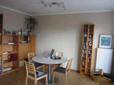 Das Wohn-/Esszimmer bietet direkten Zugang zur neu gestalteten Süd-West-Terrasse und in den