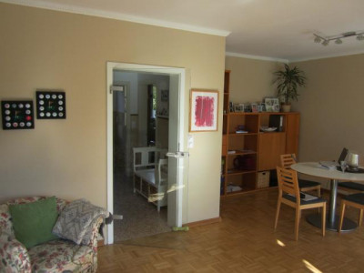 Im Keller wurde ein großer Raum als Souterrain- Wohnraum ausgebaut. Ein zusätzliches Duschbad ist hier vorhanden. Neben dem Eingangsbereich befindet sich der Außenzugang zum Keller.