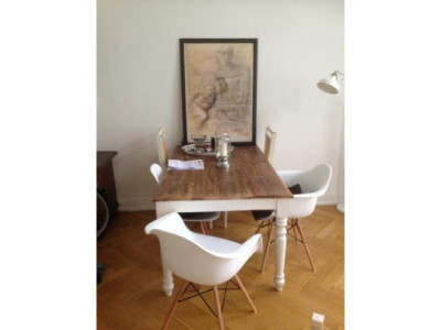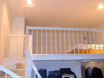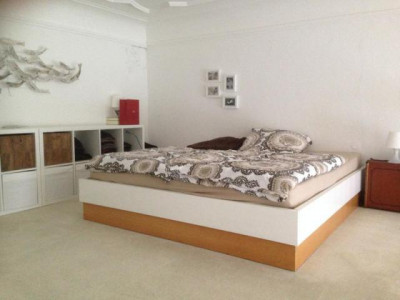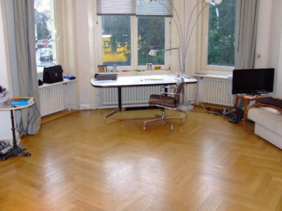 stilvolle kleine Villenétage mit hohen Decken (ca. 4,80 m), Stuck, offener Schlafgalerie mit fest eingebautem Bett, Kleiderschrank und Deckenleuchten, kleine Küche mit Schränken, Herd, Kühlschrank und Spüle, Vollbad in blau mit Waschmaschinenanschluß, Fischgrät-Parkett im Wohnbereich, große Fenster (Isoglas), Zentralheizung, Gegensprechanlage, Kabel-TV etc.Weitere Informationen zum Energieverbrauchsausweis: Baujahr: 1996, Energieeffizienzklasse: D