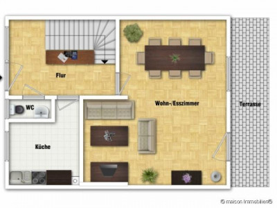 Diese Immobilie wurde 1970 in massiver Bauweise auf einem herrlichen Grundstück errichtetErdgeschoss:- Küche gefliest, Einbauküche mit hellen Fronten und Vollausstattung - Wohn-/Esszimmer mit bodentiefen Fenstern und Teppichboden- Gäste-WC im Stil des BaujahresDach-/Obergeschoss:- Drei Zimmer mit Teppichboden- Wannenbad weiß gefliest- Spitzboden ausgebautKeller:- Heizungskeller- 2 Kellerräume- AußenabgangGrundstück:- Pflegeleicht angelegt und eingezäunt- Süd-TerrasseTechnik:- Gaszentralheizung mit Brennwerttechnik Bj. 1985- isolierverglaste KunststofffensterVerkaufsbedingung: Die jetzigen Eigentümer verbleiben nach erfolgtem Verkauf als Mieter im Objekt. Als Mietzins werden ca. € 8,00/m² angenommen.