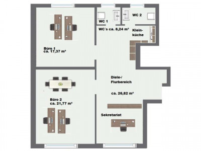 Sehr praktisches und gut ausgestattetes 3 Raum Büro in zentrumsnahe Lage von Siegburg. Die Böden sind mit Laminatboden ausgelegt und die Wände mit Raufaser tapeziert. Das Büro verfügt über zwei WC´s und eine Teeküche. Zu dieser Büroetage gehört ein Garagenstellplatz sowie ein Archivraum im Kellergeschoss.Eine Nutzungsänderung zu Wohnzwecks wäre möglich. Die Fläche ist derzeit für 520,- EUR + 60,- EUR Garage = 580,- EUR zzgl. 230,- EUR NK vermietet.