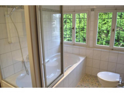 Das freistehende, voll unterkellerte Einfamilienhaus mit Walmdach nebst einer integrierten Garage, wurde 1960 in Massivbauweise erbaut und befindet sich in einem sehr guten Allgemeinzustand. Beide Bäder sowie das Gäste-WC wurden 2009 modernisiert. Die Heizungsanlage der Fa. Viessmann als Brennwerttechnik inkl. Warmwasseraufbereitung ist 2011 ausgetauscht worden. Der Ölverbrauch liegt seit dem bei ca. 4000 l pro Jahr inkl. der Warmwasseraufbereitung. Der tatsächliche Energiebedarf ist somit weitaus günstiger als der Energieausweis dokumentiert! Folgende Aufteilung finden Sie vor:Erdgeschoß: - großzügiger Wohn-/ Essbereich mit großen Fensterflächen Richtung Siebengebirge - helle und imposante Eingangsdiele mit Zugang zur überdachten Terrasse und dem liebevoll angelegten parkähnlichen Gartenbereich. - 1 Elternschlafzimmer mit Mosaikparkett und Fensterschlagläden, die von innen zu bedienen sind. Dieses Schlafzimmer hat ein Bad en Suite. - 1 Kinderzimmer mit Mosaikparkett und Fensterschlagläden, die von innen zu bedienen sind. - Küche mit Einbauten . Dachgeschoß: - 3 weitere Schlafräume mit Holzdielen, teilweise mit Einbauschränken - geräumige, helle Wohndiele - Wannenbad mit Duschabtrennung - ein ca. 25 m² große Schlafraum, der im Zuge der Neuvermietung ausgebaut wird.Kellergeschoß: - Waschküche mit Kelleraußentreppe - 2 Kellerräume - Garage mit Schwingtor - Heizungsraum
