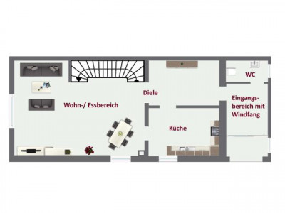 Das Haus ist ursprünglich ein Fachwerkhaus aus dem Jahr 1900, welches Anfang 1980 komplett kernsaniert wurde. Das Haus ist teilunterkellert.Im Erdgeschoss befinden sich die Gästetoilette, die Küche und eine großer Wohn-/Essraum mit Kamin. Die alte Fachwerkskonstruktion im Wohnzimmer verleihen dem Raum eine gemütlich, rustikale Atmosphäre. Im Obergeschoss befinden sich ein großes Elternschlafzimmer, ein weiteres Zimmer, welches als Kinderzimmer oder Büro genutzt werden kann sowie ein Dusch-/ Wannenbad. Das Haus befindet sich in einem guten Zustand. Die Gastherme, die das Haus beheizt ist 2009 erneuert worden. Der Laminatboden in der oberen Etage wurde 2014 neu verlegt. Der Fassadenanstrich ist 2004 erneuert worden.