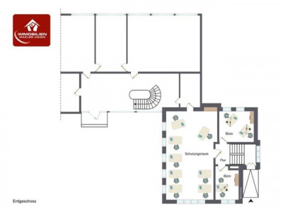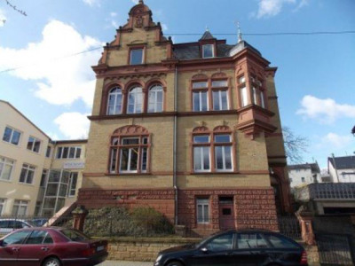 Repräsentative Stadtvilla mit atemberaubender Außenwirkung.Toplage, Top Kapitalanlage! Nachhaltiges Renditeobjekt.Ideal als Firmensitz, Kanzlei, Arztpraxis. Als Therapie- oder Seminarzentrum....... ! Aufteilung: Erste und zweite Etage (frühere Gewerbeschule) jeweils zwei große und zwei kleinere Räume davon ein schönes Büro im Erkerzimmer der zweiten Etage. Jeweils ca. 120 m² Fläche.In der abgeschlossenen Dachgeschosswohnung mit ca. 104 m² Wohnfläche sind ebenfalls zwei große Zimmer, ein Schlafzimmer eine ehemalige große Küche, sowie eine kleine Pantryküche, die man mit dem anschließenden kleinen Duschbad wieder zu einem größeren Bad umbauen kann. Von der geräumigen Diele gelangt man über eine Treppe zum nicht ausgebauten Speicher.Im Souterrain befinden sich Heizraum, Öltankraum, Vorratskeller und Werkstatt. Im Hof gibt es zwei Carports sowie Stellplätze, auf einer höheren Ebene im hinteren Bereich ein befestigter Sitzplatz mit großem Nussbaum.Die ehemalige Gewerbeschule in der Saarstraße wurde im Jahr 1893 von Heinrich Schaffner im Stile der „Deutschrenaissance“ , einem Trend des Historismus, der mit seinen stilbildenden Elementen an Gebäude aus dem 16. Jahrhundert erinnert, erbaut. Das beeindruckende zweistöckige Sandsteingebäude, dessen Südostseite ein dreistöckiger Treppengiebel und die Nordostseite ein über Eck angesetzter Erker ziert, zeigt sich nach außen streng an den für das Baujahr typischen Stil angelehnt. Vervollständigt wird dieser Eindruck durch Rundbogen mit Renaissanceornamentik und Blendarkaden. Im Innenbereich hingegen finden sich verspielte Jugendstilelemente, die im optischen Gegensatz zur äußeren Anmutung stehen. Aufgrund seiner exponierten Lage und dem gepflegten Zustand stellt das Gebäude aus künstlerischer und städtebaulicher Sicht ein Einzeldenkmal dar.Quellen:„Meisenheim“ von Meinhold Lurz, Wikipedia, Aussagen des Landesdenkmalamtes in Mainz.
