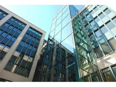Repräsentatives Bürogebäude, Glasaufzüge, hochwertiger Bodenbelag, Verkabelung, bildschirmarbeitsplatzgerechte Beleuchtung, Hohlraumboden, Sonnenschutz, Tiefgarage.Prestigious office building, glass elevators, high-quality flooring, computer screen workplaces lighting, raised floor, cabling, sun protection, underground parking.