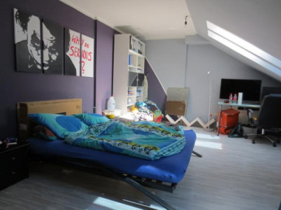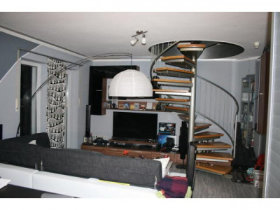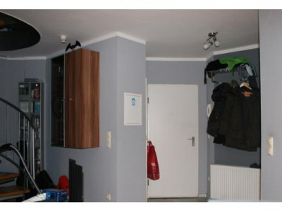 Die Wohnung verfügt über insgesamt ca. 61 m² Wohnfläche auf 2 Ebenen. Im unteren Bereich befindet sich das Wohn/Esszimmer mit offener Küche, ein kleiner Abstellraum und ein innen liegendes, modern gefließtes Badezimmer mit Wanne, in dem auch noch Raum für eine Dusche wäre. Vor dem Wohnraum befindet sich ein halbrunder Südbalkon mit Blick auf den Teutoburger Wald. Eine moderne Einbauküche mit Bar ist im Angebot enthalten. Über eine Wendeltreppe gelangt man in das obere Geschoss, in dem sich ein großes Schlafzimmer mit Einbauschränken und Panoramafenstern befindet. Zu dem Objekt gehört ein separater kleiner Kellerraum, sowie ein Garagenstellplatz. Zur gemeinschaftlichen Nutzung stehen ein Waschkeller und ein Fahrradkeller zur Verfügung.
