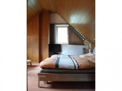 Eine sehr gemütliche und individuelle Wohnung mit großzügigen Räumen. Sie wohnen in einem kleinen Mehrfamilienhaus, in einer Wohnung die im Maisonettestil gebaut wurde.- Diele, Küche und Gäste-WC sind gefliest- große Küche- separater Essbereich - uneinsehbarer, kleiner Balkon mit Markise vom Esszimmer aus zu erreichen- offener Kamin im Wohnzimmer- ein 2. Balkon vom Wohnzimmer aus zu erreichen- Laminatboden im Wohn- und Esszimmer- neuer, heller PVC-Laminatboden im Dachgeschoss (Flur, Eltern- und Kinderzimmer)- Holzdecken und -wände im Dachgeschoss- diverse Einbauschränke im Dachgeschoss- Tageslichtbad mit Badewanne und Dusche- Gaszentralheizung mit Fußbodenheizung- Warmwasser über Durchlauferhitzer- großer Speicherraum, vielseitig nutzbar- Kellerraum- Carport- Kabel-TV- Waschküche und Fahrradkeller- Treppenhausreinigung, Hausmeister und Winterdienst sind in den Nebenkosten enthalten