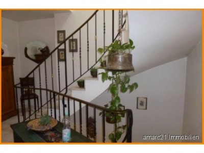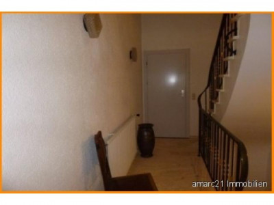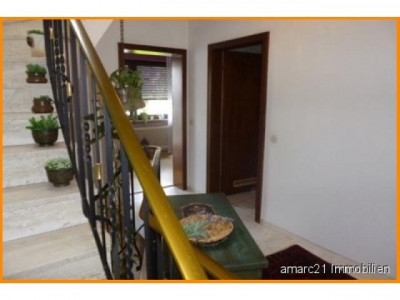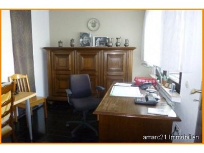 Bei diesem sehr gepflegten Reihenhaus handelt es sich um ein dreihalbgeschossiges Haus mit zusätzlicher Gewerbeeinheit (ehemalige Metzgerei) im Erdgeschoss.Der vordere Bereich - straßenseitig - mit der Eingangssituation wurde bis Januar 2014 als Metzgerei mit gepflegter Verkaufseinheit, Küche, Lager- und Kühlräumen, Büro, dem eigenen Metzgerbereich und Duschbad betrieben. Dieser Bereich kann auch hervorragend als anderweitiges Gewerbe - Büro, Wohnen und Arbeiten unter einem Dach - ideal genutzt werden.Der Hauptwohnflügel im Hochparterre wird von einem großen, offenen Wohn- Essbereich dominiert, der sich über bodentiefe, großflächige Fensterelemente auf einen tollen Südbalkon öffnet und eine lichtdurchflutete, großzügige Wohnatmosphäre schafft. Ein exklusiver Schlafbereich - mit eigenem, begehbaren Ankleidezimmer - und das Prachtbad werden Sie hier begeistern.Fließende Raumübergänge verbinden Wohnen und Essenüber den zentralen Treppenbereich miteinander.Weiter aufwärts erschließt sich der fortführende Wohnbereich. Neben einem schicken Badezimmer finden Sie hier drei weitere Räume, die ideal als Kinderbereich, Büro oder als zusätzliches Arbeitszimmer genutzt werden können. Außerdem finden Sie hier einen Balkon und eine fantastische Dachterrasse.Im Dachgeschoss - ebenfalls über das zentrale Treppenhaus erschlossen - finden Sie 2 schöne Studiozimmer und ein Gäste-WC. Das Haus ist voll unterkellert und bietet - neben der oben erwähnten Gewerbefläche - in großen sehr gepflegten Räumen Platz für Hobby und Hauswirtschaft.Von beiden Seiten befahrbar - und damit auch für Anlieferungen bestens geeignet - ist das pflegeleichte, komplett gepflasterte und ca. 449 m² große Grundstück.Nebenräume, Carport und Stellplätze sind hier in ausreichender Anzahl vorhanden.