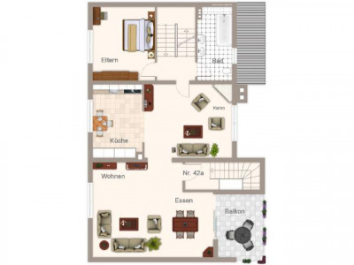 Bei dieser Immobilie handelt es sich um ein 2-Familienhaus, welches sich aufgrund der sehr gefragten Lage ideal als Kapitalanlage eignet. Die Erdgeschosswohnung mit Terrasse und eigenem Garten eignet sich auch für eine ältere Zielgruppe, die größere Maisonette-Wohnung mit eigenem Eingang und eigenem Garten ist ideal für eine Familie oder ein anspruchsvolles Paar. Die Haus Nr. 42 wurde 1975 errichtet und 1989 mit einem Satteldach baulich erweitert. Die Haus Nr. 42a wurde 1994 komplett neu errichtet. Die Aufteilung zeigt sich wie folgt:Das Haus Nr. 42 wird derzeit als 3-Zimmer-Wohnung im Erdgeschoss genutzt. Ein großes Wohn- /Esszimmer, welches sich über die gesamte Haustiefe erstreckt, hat einen direkten Zugang zur großen und überdachten Terrasse mit angrenzendem Garten. Zwei mögliche Schlafräume, eine große Küche mit Sitzgelegenheit sowie ein Duschbad stehen Ihnen hier zur Verfügung. Im Garten befindet sich ein kleines Gartenhaus mit angrenzendem Holzlager für den Kaminofen sowie umfangreiche Bepflanzungen und Beete. Die Kellerräume (Heizungskeller, Waschküche mit Kelleraußentreppe und zwei weitere Kellerräume) stehen derzeit dem Haus Nr. 42 zur Verfügung. Das Haus Nr. 42a mit über 132 m² Wohnfläche erstreckt sich über das Ober- und Dachgeschoss beider Häuser. Highlight ist hier sicherlich das große Wohn-/ Esszimmer mit Zugang zum Balkon. Weiterhin stehen Ihnen ein Kaminzimmer mit angrenzender Küche, 2 Schlafräume, ein Gäste- oder Arbeitszimmer sowie ein Dusch- und ein Wannenbad zur Verfügung. Vor dem Haus befinden sich ein separater Gartenteil mit Gartenhaus, welcher dem Haus Nr. 42a zugerechnet ist sowie 2 PKW-Stellplätze. Das Zweifamilienhaus ist als Reiheneckhaus gebaut worden, die umlaufende Grundstückflächen sind vom Eigentümer sehr geschmackvoll angelegt worden.