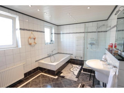 Ihr neues Zuhause wurde im Jahr 1962 in Massivbauweise errichtet und über die Jahre in weiten Bereichen modernisiert:Die Elektroinstallationen, die Dachabdichtung sowie die Innentüren wurden im Jahr 2000 erneuert. Im Jahr 2014 wurde die Heizanlage erneuert, die Leitungen im Jahr 1998.Das Erdgeschoss bietet dank großer Fensterfront einen lichtdurchfluteten Wohnraum sowie zwei weitere Zimmer mit vielen individuellen Gestaltungsmöglichkeiten je nach Geschmack und Lebenssituation.Neben vier Schlafzimmern verfügt Ihr neues Zuhause über zwei Badezimmer, welche sich auf zwei Etagen verteilen. Das Badezimmer im 1. Obergeschoss ist u. a. mit einer Dusche, einer Badewanne sowie zwei Fenstern ausgestattet und wurde im Jahr 2005 modernisiert.Im Erdgeschoss wurde das Bad 1990 modernisiert und mit einer Dusche ausgestattet. Ihren wohlverdienten Feierabend können Sie in dem liebevoll angelegten und pflegeleichten Garten mit sonnenverwöhnter Terrasse in Südwestlage genießen. Die große Garage befindet sich direkt am Haus und ist im Kaufpreis enthalten. Das Haus ist vollunterkellert und bietet Ihnen reichlich Stauraum.