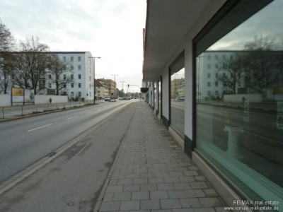Ebenerdig, mit Eingang von der Landshuter Straße und gleichwertigem Eingang von der Tillystraße aus.3 Parkplätze am rückseitigen Eingang.123,4m² Gesamtfläche, 2 Räume und WC mit Dusche und Waschbecken.Raumhöhe 278 bzw.298 cm4 Schaufenster zur Landshuter Staße, mit Thermoverglasung.Schallschutzfenster SSK3Bj.1987 bzw. Neubau 2006 mit neuer Wärmeisolierung