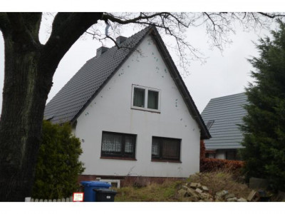Es handelt sich hierbei um ein im Jahre 1961 erbautem Einfamilienhaus mit Doppelgarage.Im Erdgeschoss befinden sich ein Wohn-Esszimmer, eine Küche, eine Diele und Bad/WC die sich auf ca.57 m² verteilen.Das Dachgeschoss ist ca. 40 m² groß und verfügt über drei Schlafzimmer, einem Bad und Diele.Das Objekt ist mit Kunststoffenstern ausgestatte und verfügt über einer Ölzentralheizung.