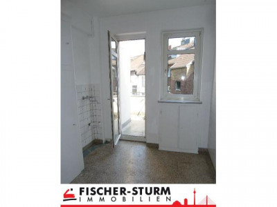 Ihre neue Wohnung liegt in der dritten Etage eines gepflegten Mehrfamilienhauses. Im Erdgeschoss befindet sich ein derzeit leerstehendes Ladenlokal und im großen Hinterhof ist ein überdachter Abstellplatz für die Fahrräder untergebracht. Zu Fuß geht es durch das Treppenhaus in die dritte Etage. Von dem großzügigen Flur gehen drei Räume ab. Die beiden, mit großer Öffnung verbundenen, Wohnräume liegen zur Straßenseite. Ein Schlafzimmer, die Wohnküche und der Balkon liegen zur Rückseite des Hauses. Das Badezimmer ist nicht zu knapp bemessen und weiß gefliest. Für Ihre Waschmaschine gibt es eine Etage höher einen Waschraum.