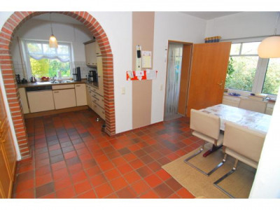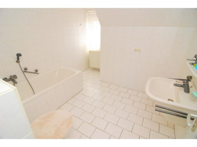 Das geräumige Einfamilienhaus mit Klinkerfassade,Tondachpfanne, Dachgauben, Kunststofffenster mit Iso-Glas, Teilkeller, Ölheizung (Bj.: Buderus: 2009).Energieausweis i.V.Altbau:Das Erdgeschoss hat überwiegend Fliesenböden, über die große Diele gelangt man zu einem Schlafzimmer, sowie dem Wohnbereich mit Kaminzimmer, Küche und Wohnzimmer, von der Küche gelangt man auch zum Hinterausgang, ein Schwimmbad befindet sich ebenfalls im EG, hier erreicht man durch eine große Schiebetür die geflieste teilweise überdachte Terrasse. Das Schwimmbad wir als solches nicht mehr benutzt, bietet aber Ideal als Hobbyraum an!Eine geflieste Betontreppe führt ins Dachgeschoss, hier sind neben dem neuwertigen Badzimmer mit Badewanne auch 3 Schlafzimmer und eine Ankleide vorhanden. Zugang von einem Schlafzimmer zur Loggia.Anbau ( Bj. 1991):Das Erdgeschoss mit Fliesenböden, ein großes Wohn-/Esszimmer mit Zugang zur Überdachten Terrasse, führt weiter zum großzügigen Küchenbereich, die Einbauküche( im Preis enthalten)befindet sich in einer Nische mit Rundbogen, über die Küche erreicht man den Hinterausgang.Über die geflieste Treppe kommt man ins Dachgeschoss, hier ist ein Badezimmer mit dusche und Badewanne, Waschtisch und WC vorhanden, 5 Schlafzimmer mit Durchgangszimmer und Abstellraum bieten viel Platz.Den großen Garten kann man vom Altbau, sowie vom Anbau begehen, hier hat man eine schönen Feld-/Wiesenblick! Das massive Nebengebäude mit Spitzdach hat einen Geräteraum und zwei Garagen, sowie ein angrenzedes Carport.Kleintierhaltung möglich!Ideal für die große Familie oder als Zwei-Generationhaus!