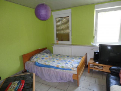 Das ehemals landwirtschaftlich genutzte Gebäude wurde ca. im Jahre 1945-1949 in massiver Bauweise errichtet und besteht aus einem Wohnteil mit Teilkeller und angebauter Scheune sowie weiteren Nebengebäuden mit sehr viel Platz. Die letzte Modernisierung des Wohntrakts stammt aus dem Jahre 2013 und befindet sich in einem guten Zustand. Teilweise wurden die Fenster erneuert, Elektroinstallation, der Fußboden wurde komplett saniert und ist verfliest, Erdgeschoßdecke und die Bäder sind im Jahr 2010 modernisiert worden. Die Heizungsanlage stammt ebenfalls aus dem Jahr 2010 und ist eine hochwertige Brennwertanlage von der Firma Brötje mit separatem Warmwasserspeicher. Das Dachgeschoß ist nicht ausgebaut und bietet zudem eine weitere Ausbaufläche mit ca. 100 m². Die Wohnfläche beträgt ca. 110 m² und besteht aus 5 Zimmer, Küche, 2 Bäder, die Nutzfläche beträgt ca. 860 m², das Grundstück hat insgesamt eine Größe von 2667 m². Die angebaute Scheune ist ebenfalls in einem guten Zustand und bietet sehr viel Platz. Zudem befinden sich weitere Nebengebäude auf dem Grundstück, die ebenfalls in massiver Bauweise erstellt wurden und sich auch in einem guten Zustand befinden. Die Nutzung ist sehr vielfältig und ist geeignet für Hobby, Freizeit, als Lager oder auch Tierhaltung wie z.B. Pferde etc. Auch eine gewerbliche Nutzung ist nicht ausgeschlossen, diese müsste allerdings durch die Behörden erfragt und evtl. genehmigt werden.
