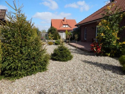 ***************************************************************************************** Alle Informationen zu diesem Objekt finden Sie unter www.tiehen.com/8317. Sowie mehr als 250 weitere Objekte auf www.tiehen.com! ***************************************************************************************** DACH:- rotes Walmdach AUSSENWÄNDE:- roter Klinker HEIZUNG:- Erdgaszentralheizung FENSTER:- Kunststoff-Iso-Verglasung AUSSTATTUNG:- Einbauküche im Kaufpreis enthalten- Bad: Wanne, Dusche, Doppelwaschbecken- Bodenbeläge: Fliesen, Laminat, Parkett- Innentüren Holz - Betontreppe zum Dachgeschoss AREAL:- pflegeleichtes Gartengrundstück, uneinsehbar- Kiesbeete- Garten, mit Zierteich- Carport, mit E-Sektionaltor, mit Geräteraum- Freisitz- Terrasse, gepflastert SONSTIGES:- Das DG ist ausbaubar.- Einkaufmöglichkeiten etc. vor Ort!- Bezug nach Vereinbarung RAUMAUFTEILUNG:Erdgeschoss:- Wohnzimmer: 36,77- Schlafzimmer: 12,25- Schlafzimmer: 15,30- Schlafzimmer: 11,20- Küche: 13,02- Bad: 6,80- Gäste-WC: 1,90- Flur: 2,55- Diele: 12,82- HWR: 7,05