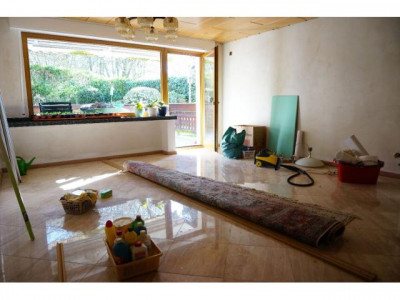 Die Wohnung befindet sich im Souterrain eines sehr gepflegten Mehrfamilienhauses mit 4 Wohneinheiten und bietet zwei Zimmer, eine Wohnküche, eine großzügige Diele sowie ein Tageslichbad mit Wanne, Dusche und Fenster.Der zum Süden orientierte Wohnraum mit hochwertigem Marmorboden ist lichtdurchflutet und führt direkt zur 16 m² großen Südterrasse mit Blick ins Grüne.Das Schlafzimmer ist mit Vinylboden in moderner Holzoptik verlegt; die Wände sind tapezierfähig gestaltet. Das Badezimmer verfügt neben Tageslicht über eine Badewanne sowie über eine Dusche. Wie auch in der Diele, ist hier Granitboden vorhanden. Die Wohnküche ist mit einer Einbauküche ausgestattet und bietet ausreichend Platz für eine schöne Essecke.