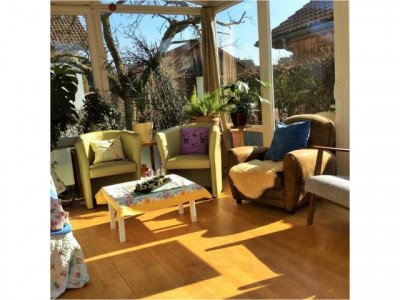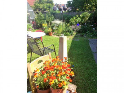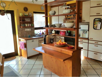 In bevorzugter, verkehrsberuhigter Wohnlage am Ortsrand der Gemeinde Buggingen liegt dieses Reihenendwohnhaus auf einem 403 m² großen, sonnigen Grundstück. Das 1986 massiv erbaute, geräumige Wohnhaus bietet Ihnen und Ihrer Familie viel Platz und Freiraum. Im Erdgeschoss befinden sich ein Tageslicht-Gäste-WC, eine großzügige Wohnküche mit offenem Esszimmer mit im Kaufpreis enthaltener Einbauküche. Von hier führt eine „zweite“ Haustür über die sonnige Süd-West-Terrasse durch den hinteren Garten zur Garage und zwei Autostellplätzen. Im Erdgeschoss befindet sich außerdem ein Wohn-/Arbeitszimmer, über welches man in den beheizbaren Wintergarten gelangt. Die Größe und Geräumigkeit des Wintergartens mit Sicht in beide Gartenteile laden zum gemütlichen Beisammensein mit der Familie und Freunden ein. Eine großzügig angelegte Treppe führt Sie vom Flur des Erdgeschosses ins erste Obergeschoss. Hier sind drei einzelne Zimmer ausgestattet mit Parkettboden, die jeweils als Kinder-, Schlaf- oder Arbeitszimmer genutzt werden können. Außerdem befindet sich auf dieser Etage ein Tageslicht-Badezimmer mit zwei Waschbecken, Toilette, Badewanne und separater Dusche. Über das Treppenhaus gelangen Sie ins zweite Obergeschoss, welches als Wohn-/Arbeitszimmer aber auch als weiteres geräumiges Schlafzimmer genutzt werden kann. Vom Flur aus haben Sie Zugang zu der großen teilbedachten Dachterrasse, von der Sie über die fast angrenzenden Rebberge hinweg den Blick zum Blauen genießen können. Im Untergeschoss des komplett unterkellerten Wohnhauses gibt es neben dem Wasch-/Heizungsraum einen Vorratsraum, einen Hobbyraum und ein weiteres komplett ausgebautes Wohn-/Arbeitszimmer mit einem großen Tageslichtfenster. Die Waschbeckenecke bietet die Möglichkeit einer Nutzung als Gästezimmer.